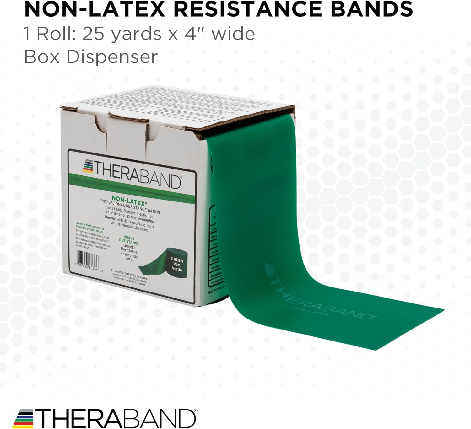 - 25 YARDS OF GREEN BAND: This 4" wide heavy resistance band offers balance between control and challenge; 25-yard roll lets you cut custom lengths for tailored use at home or in clinical settings