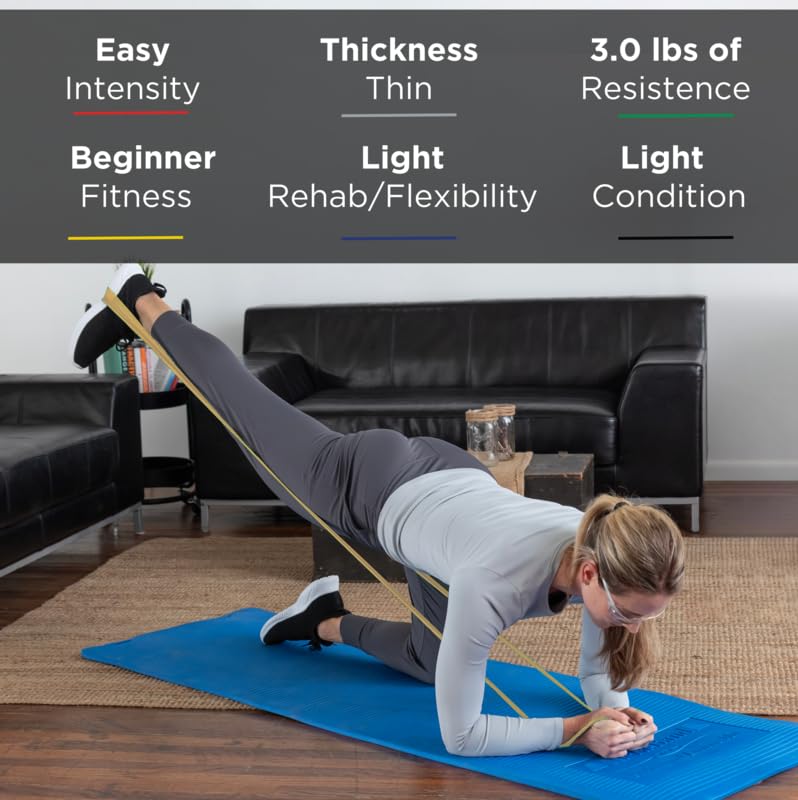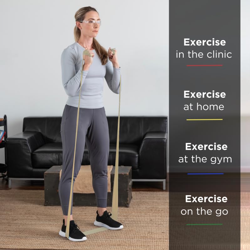 - Extra Thin, Tan Bands are the first of eight levels of resistance and are great for rehabilitation or those beginning an exercise program, they offer 2.4 lbs. resistance at 100% elongation and 3.4 lbs. at 200%, roll measures 6 yards long x 5" wide