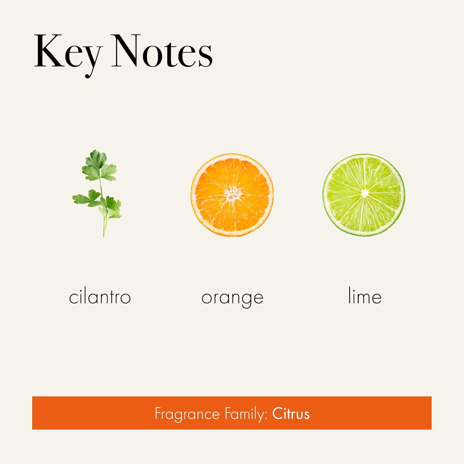 - SCENT - Cilantro Orange features freshly chopped cilantro and juicy mandarin that blends with buttery avocado, giving background to a mix of fresh lime, spearmint, and ginger.