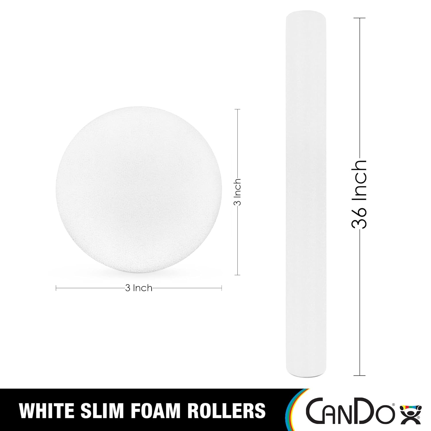 CanDo Slim White PE Foam Rollers for Exercise, Fitness, Muscle Restoration, Massage Therapy, Sport Recovery and Physical Therapy for Home, Clinics, Professional Therapy 3" x 36" Round