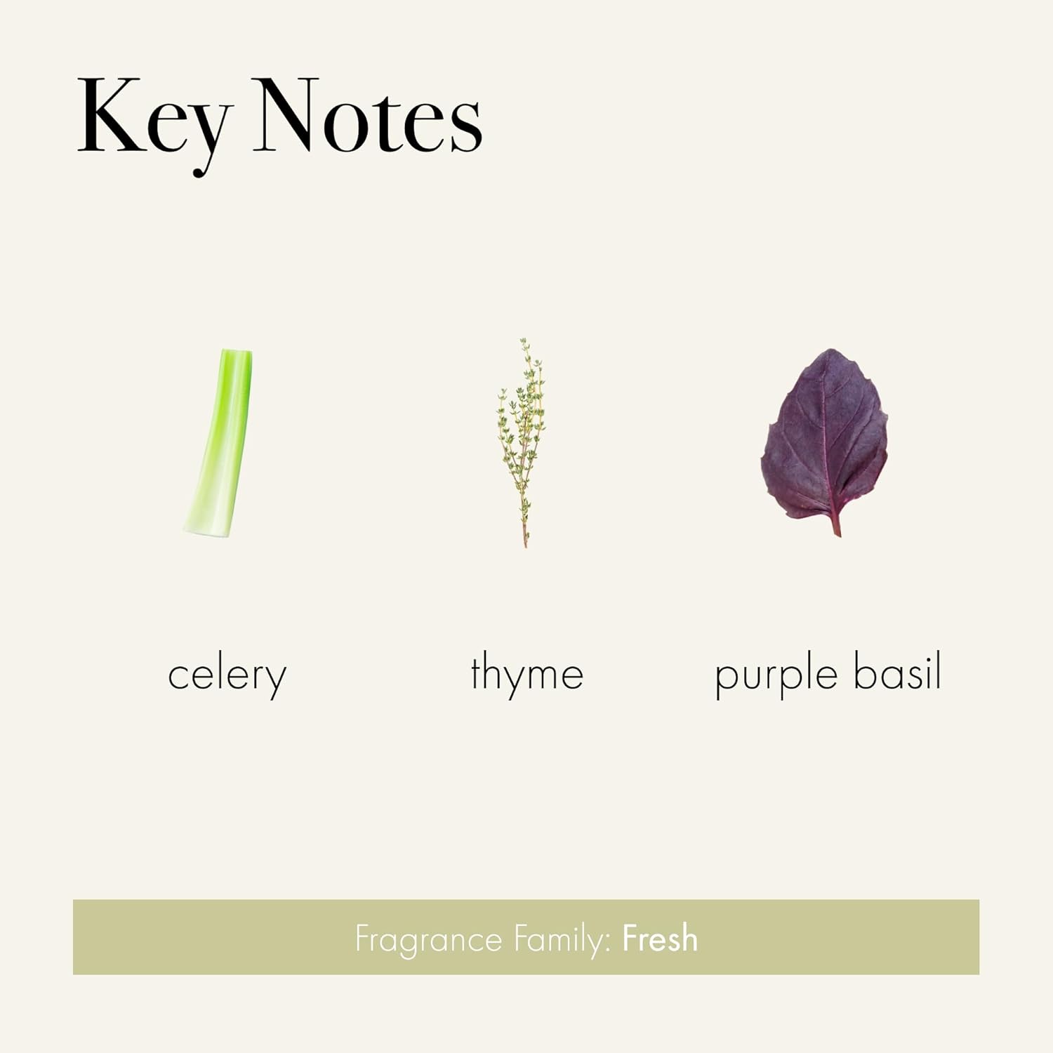 - SCENT - Celery Thyme features crisp notes of fresh cucumber that evolve into a heart of tart celery seed. Bright star anise, mixed with crushed thyme leaves and purple basil, invite a spicy green finish.
