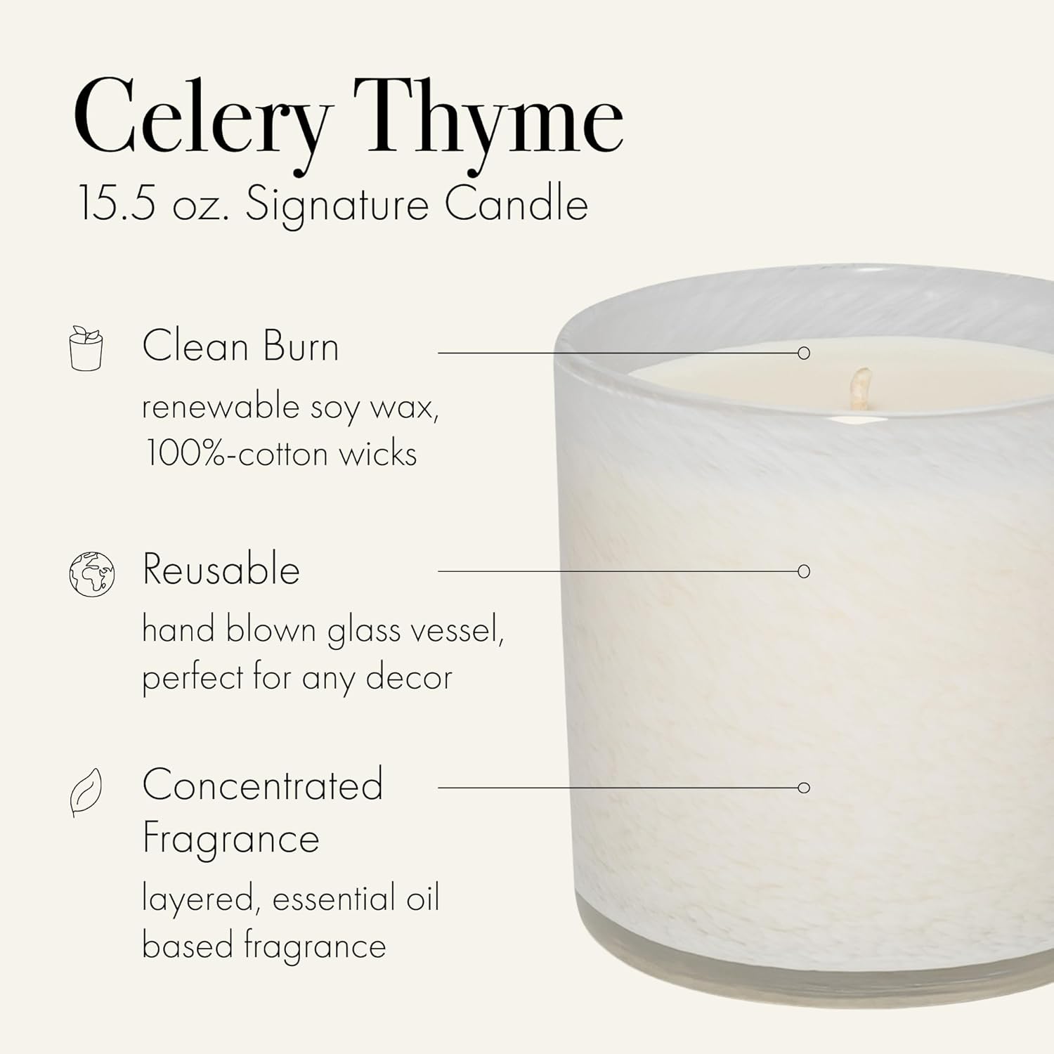 - HOUSE & HOME COLLECTION - Our House & Home collection transports you to a room, setting, or destination through the combination of scent, color, and design. The Celery Thyme candle evokes the mood of being in a Dining Room.