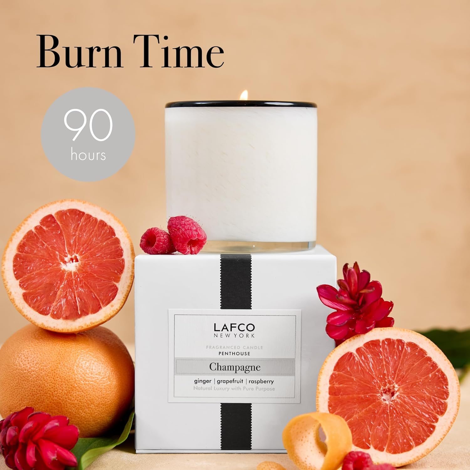- SCENT - Champagne features fresh orange & mandarin zest, raspberry & Tuscan lemon sparkle, and a twist of grapefruit & ginger. Essences of rose and neroli, woven with verbena, make the scent effervescent and bright.