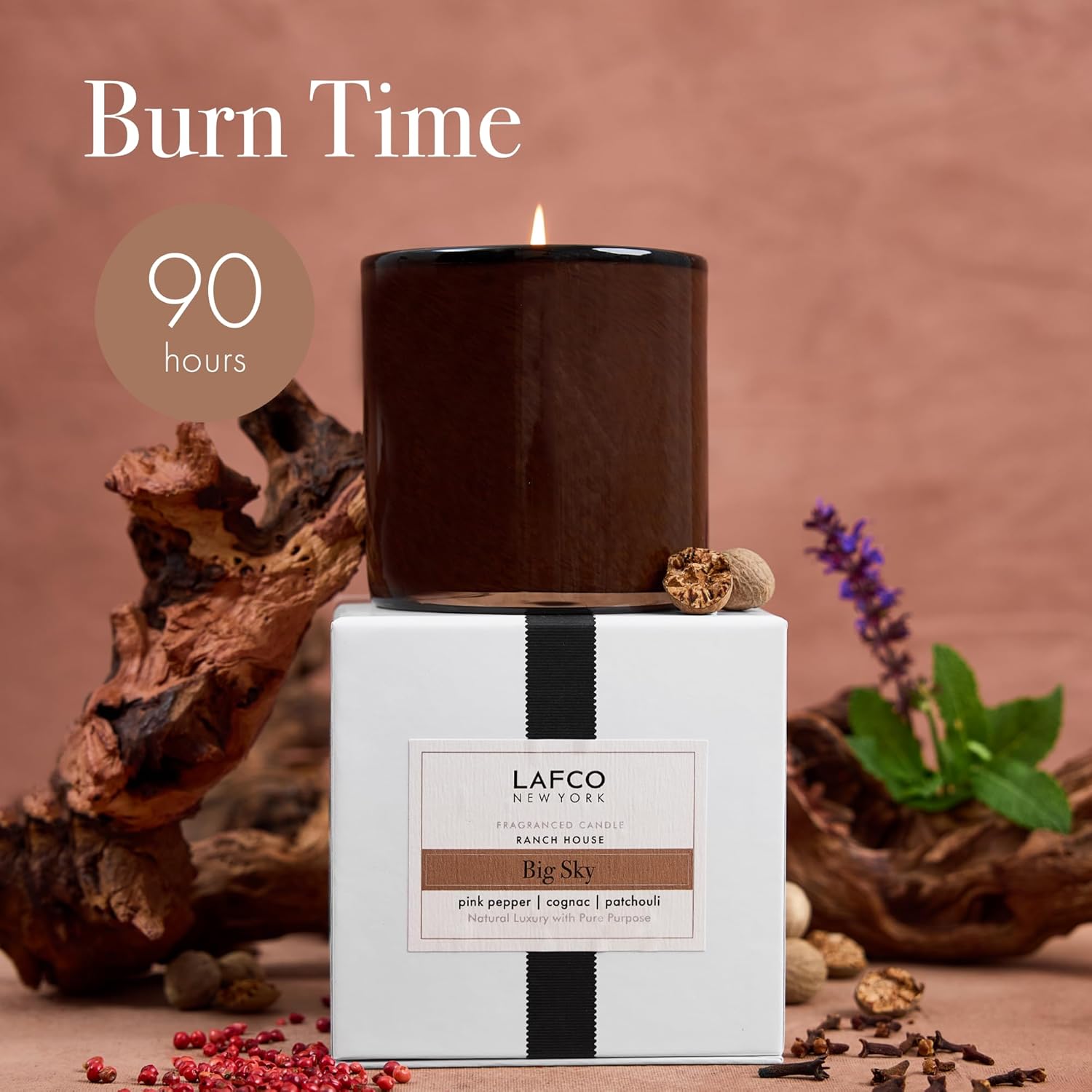 - SCENT - Big Sky features top notes of pink peppercorn and the spiciness of clove bud mixed with elemi. Hints of ylang ylang emerge as cognac, sandalwood, and amber settle into a rich base of patchouli.