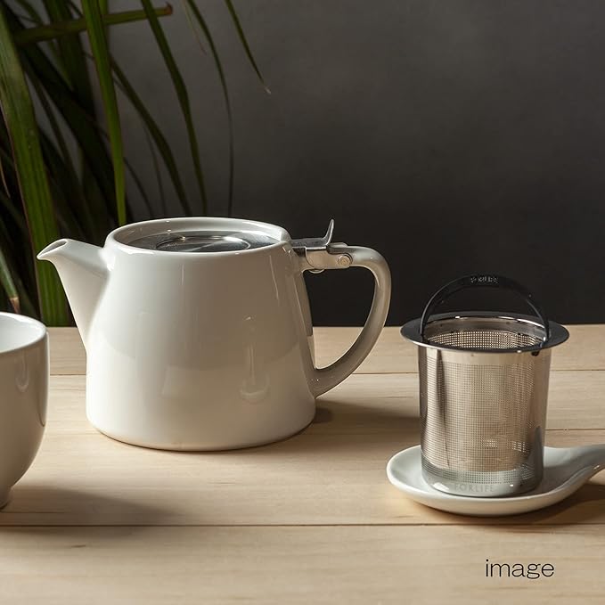 FORLIFE Stump Teapot with SLS Lid and Infuser, 18-Ounce, White