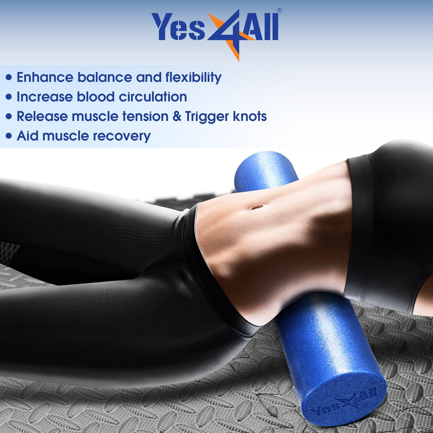 Yes4All Medium Firm Round PE Foam Roller 12, 18, 24, 36 Inches for Pilates, Yoga, Stretching, Balance & Core Exercises