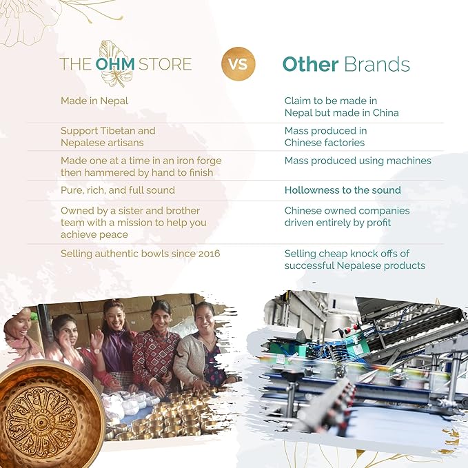 - HAND INSPECTED AND TESTED FOR PERFECT SOUND QUALITY — Ohm Store ensures it produces and sells only the highest quality meditation accessories and best playing Tibetan singing bowl sets by hand inspecting and testing each set for perfect sound quality. Our products are built to last, offering reliable use over time