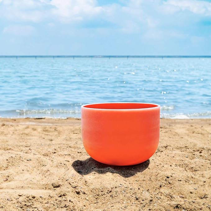 - This gorgeous TOPFUND orange colored navel chakra singing bowl is handcrafted grinding and polishing tuned to D# note 4th octave. The TOPFUND quartz bowl is made from high quality quartz. The crystal singing bowl comes with a premium quality heavy duty carrying case and a suede bundle bag for transit and sound healing therapy meditation. The suede striker and O-ring packed in a bundle pocket. Instruction paper for sound bowls healing included.