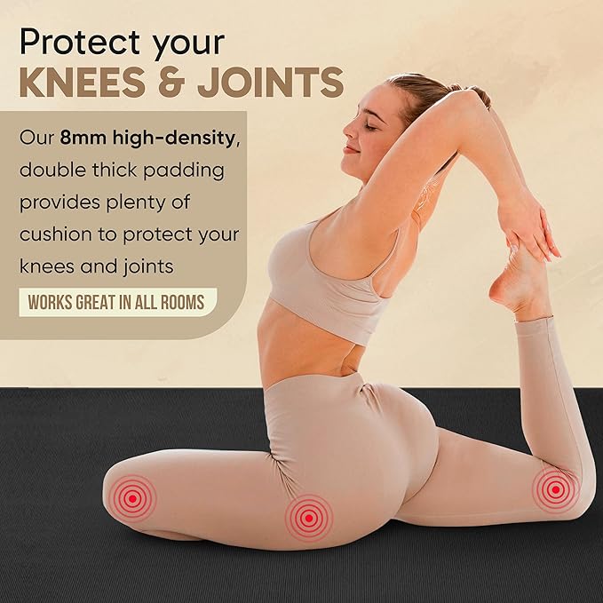 - Extra Thick & Ultra Comfortable – The perfect balance of squishy comfort and stable support. Our 8mm high-density, double thick padding provides plenty of cushion to protect your knees and joints – even on concrete, tile or hardwood floors. Works great in all rooms and flooring including living room carpet, garage or basement.