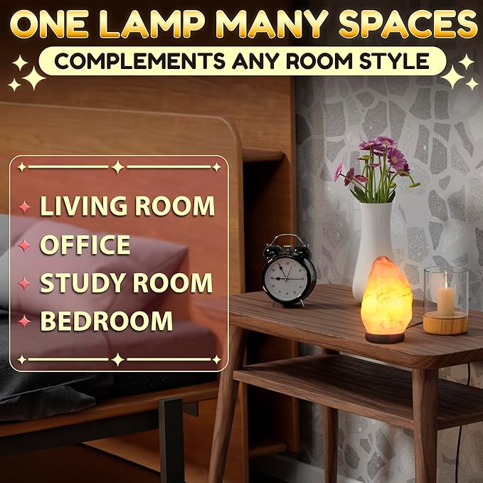 - Himalayan Salt Night Light with Stable Wooden Base & Cord: A sturdy wood base ensures stability, while the 5.9 ft cord with dimmer makes this Himalayan lamp easy to place by your bed or desk