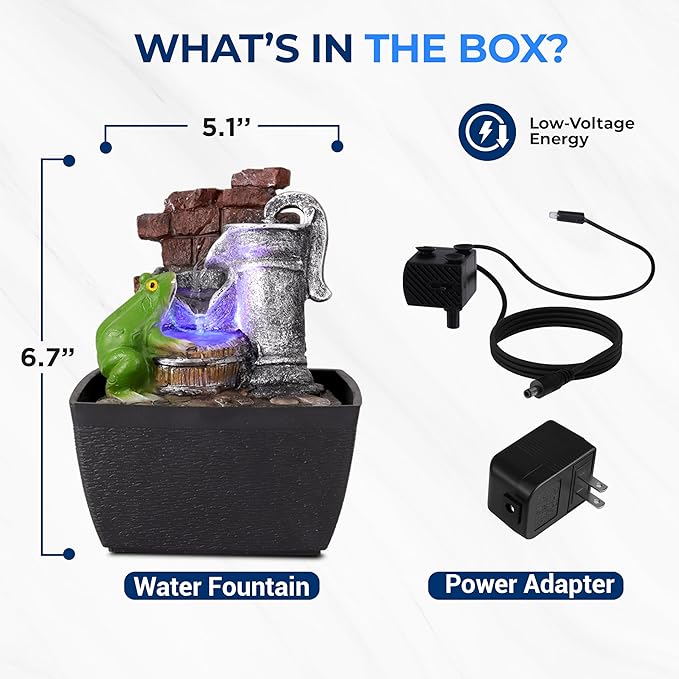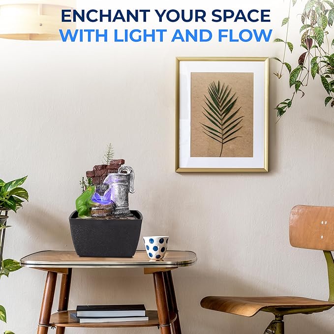 - LIGHTS UP THE MOOD: This 3-tier relaxing table top fountain decoration has a subtle LED illuminated lighting effect that is really pleasing to the eye and that’s sure to improve your comfort.
