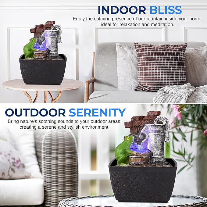 - INDOOR & OUTDOOR SAFE: A versatile gardening and landscaping piece, this cool tiered desktop cascade LED fountain can be placed anywhere inside or outside your home. Perfect for your bedroom, garden or patio!