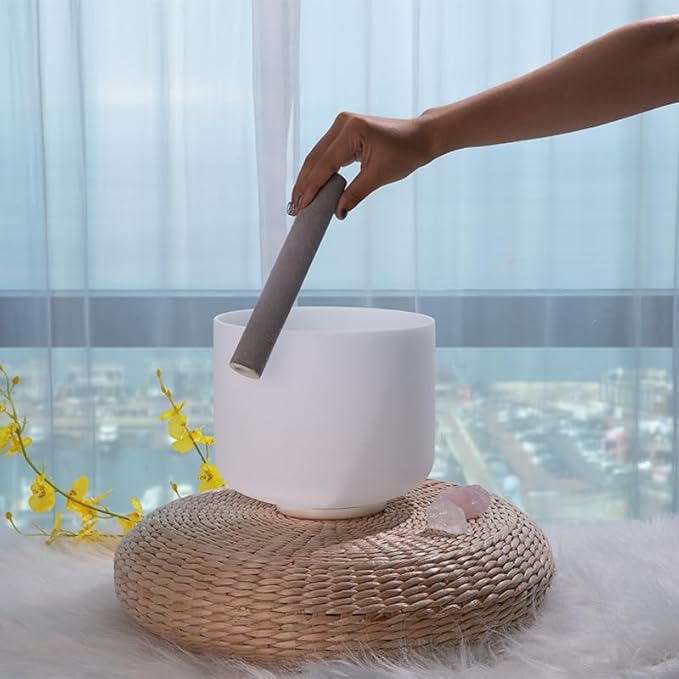 - This crystal singing bowl heart chakra is tuned F note on 432 hz. Topfund crystal singing bowls have a translucent white, It is produced from the highest quality quartz. The crystal singing bowl set comes with a heavy duty crystal singing bowl case. The crystal singing bowl is housed in a suede texture singing bowl bag to provide protection and easy to access. A crystal singing bowl mallet suede striker & O-ring are packed in bundle pocket. Instruction paper for sound bowls healing included.