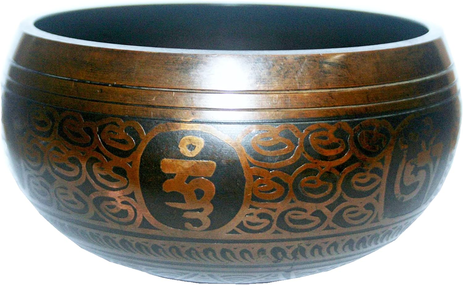 - Includes Bronze Auspicious Symbols 3.5 inch Singing Bowl, Wooden Mallet and Silk Cushion. Cushion color may varies. Bowl is 2.5 inch tall and weighs approximately 13 oz.
