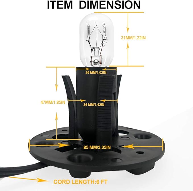haraqi Himalayan Salt Lamp Cord (6ft) with Dimmer Switch,Original Replacement Cord with Base Assembly(3.34 Inches) and 6 Piece 25 Watt E12 Bulbs for Salt Rock Lamp