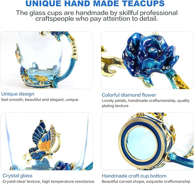 - UNIQUE HANDMADE TEACUPS SET:The mug made of handmade enamel, 3D flower butterfly desigen and decorated by Flower and butterfly.