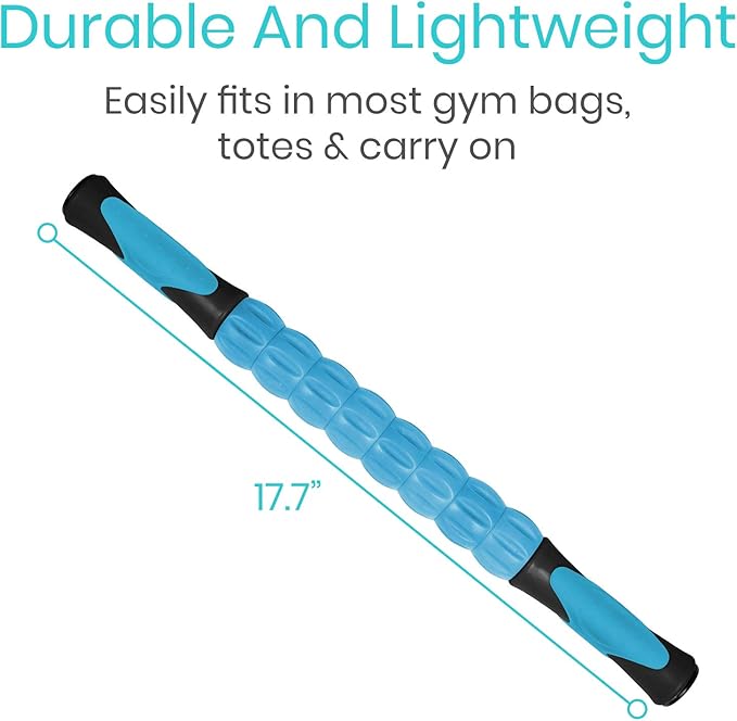 - DURABLE AND LIGHTWEIGHT: Measuring 17.7 inches, the massage roller stick is lightweight and easily fits in a gym bag, carry on or tote. The portable muscle roller stick is constructed with a durable composite material and strong metal core.
