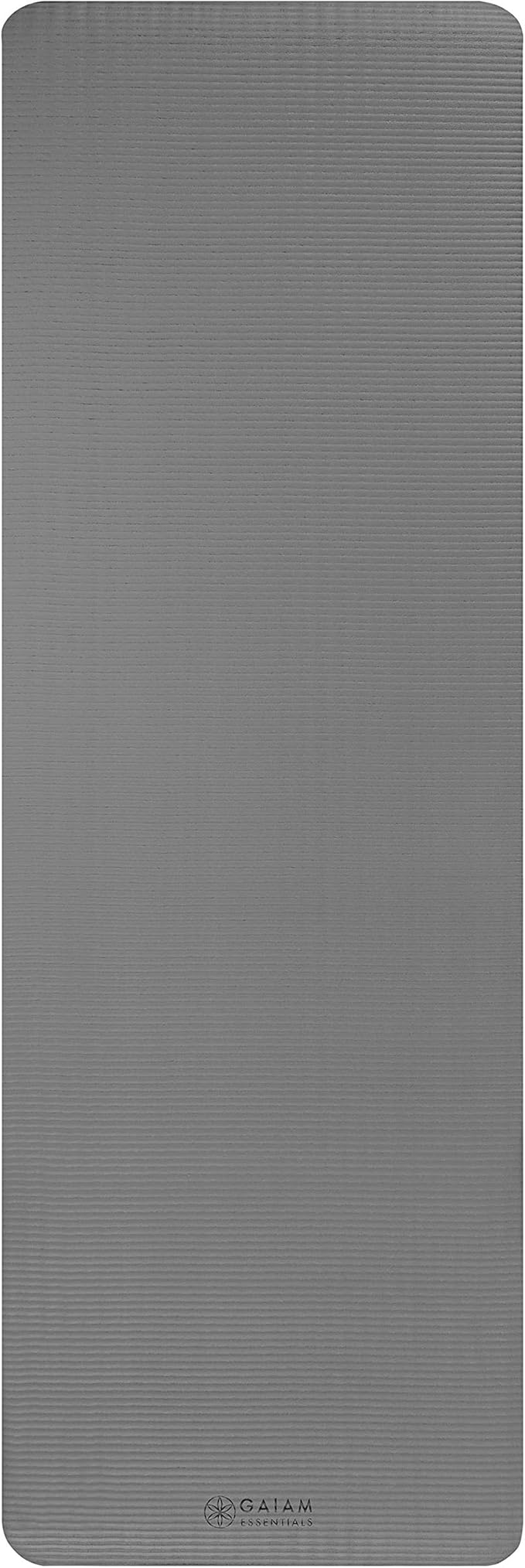 Gaiam Essentials Thick 2/5" (10mm) and Thin 1/4" (6mm) Yoga & Pilates, Fitness & Exercise Mat with Easy-Cinch Carrier Strap