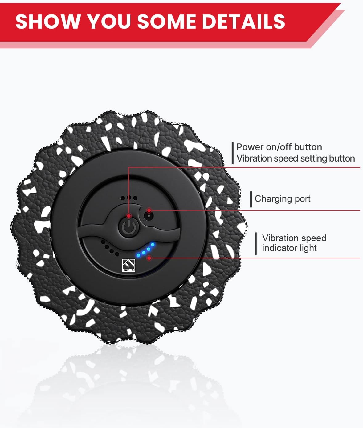 FITINDEX Vibrating Foam Roller for Muscle Deep Tissue, Back Pain Relief, Leg Foot Neck Massager, Exercise, Pilates, Muscle Recovery, Physical Therapy, 4-Speed, Rechargeable, Black