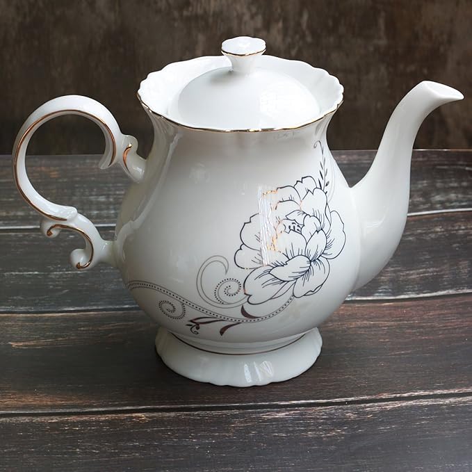 Jomop European Style Ceramic Flower Teapot Coffee Pot Water Pot Porcelain Gift Large 5.5 Cups (1, White)