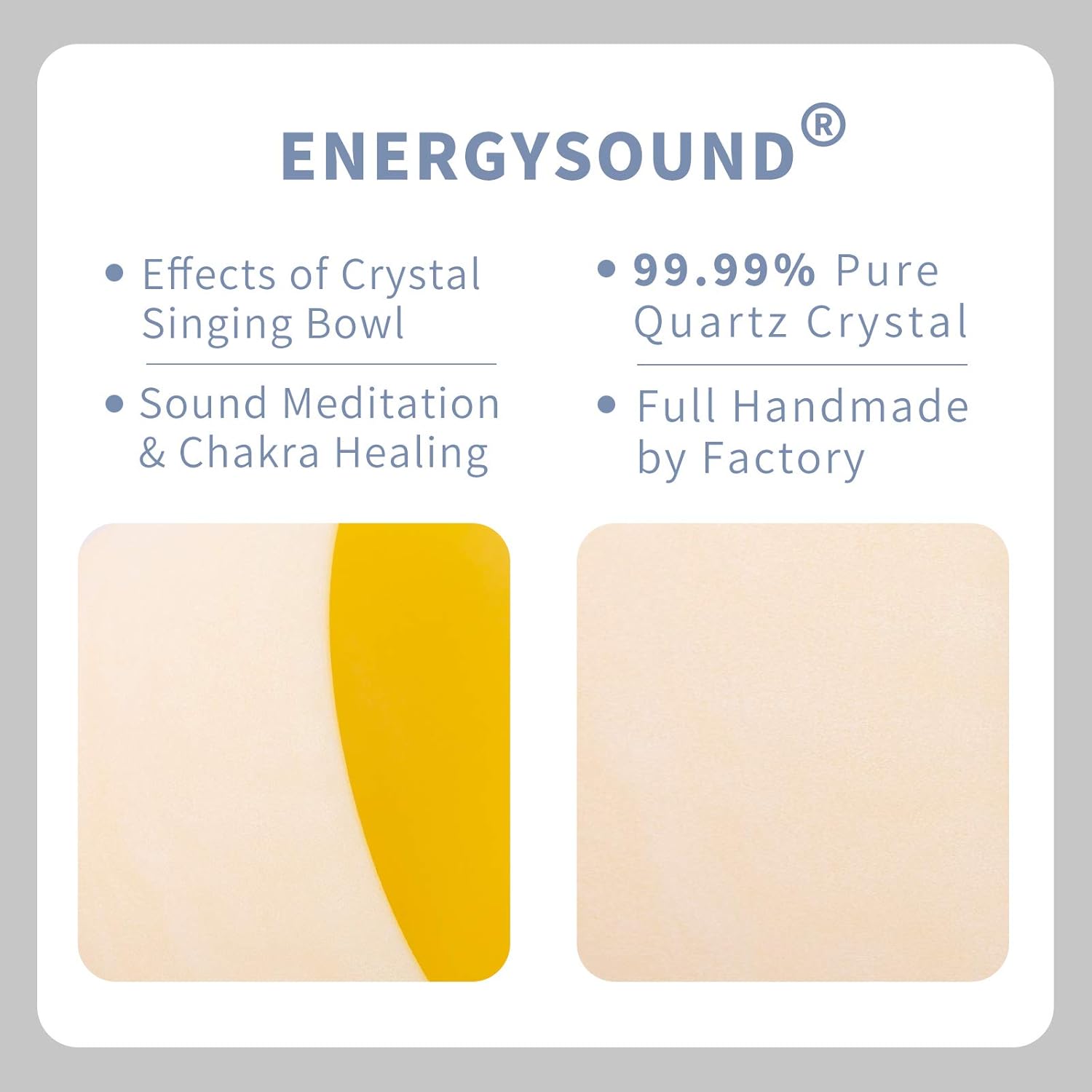 - ENERGYSOUND CRYSTAL SINGING BOWL: Our crystal singing bowls are made of high-quality crystal with a purity higher than 99.99%. They are beautiful to look at and listen to. Each singing bowl looks bright and not very very white; The sound is clear and lasting long time. Each product is carefully selected to ensure accurate note and clear sound. We are directly operated by the factory, buyers can get the high-quality and good price crystal singing bowls.