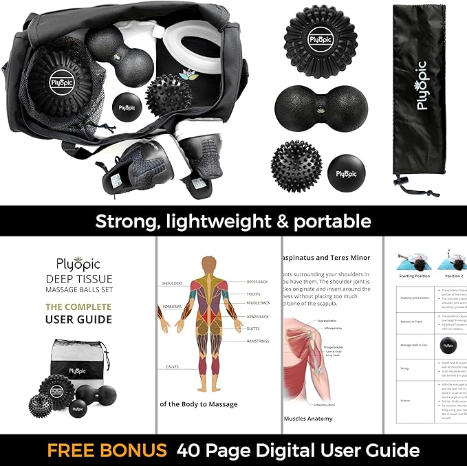 - YOUR OWN PERSONAL MASSAGE THERAPIST – Save the time and cost of physiotherapy massage treatments with a lightweight portable solution for home, work or the gym. Includes: 5in, 3.5in and 2in balls, 3in double ball, carrying bag and digital user guide