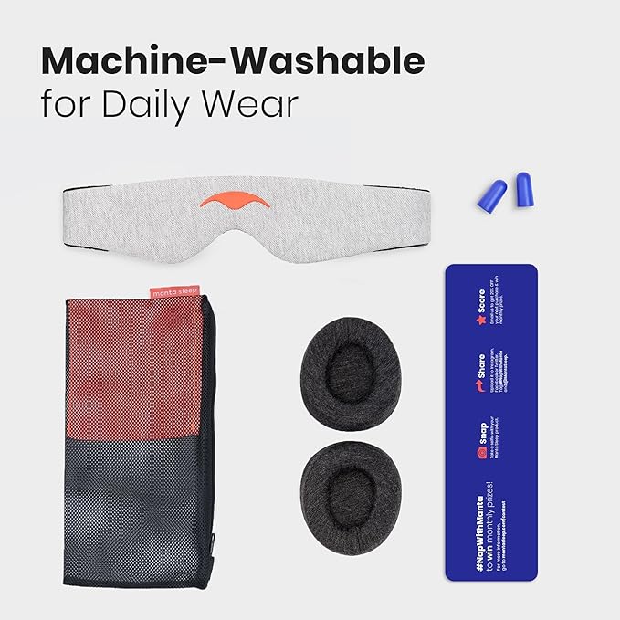 - 100% Machine Washable for Easy Care — Designed with your busy life in mind, your Manta is a breeze to clean. Simply use cold water, place the mask (eye cups and all) in the included carrying pouch, which doubles as a handy laundry mesh net, and then lay it flat to air dry. Wake up every day to a refreshingly pristine sleep experience.