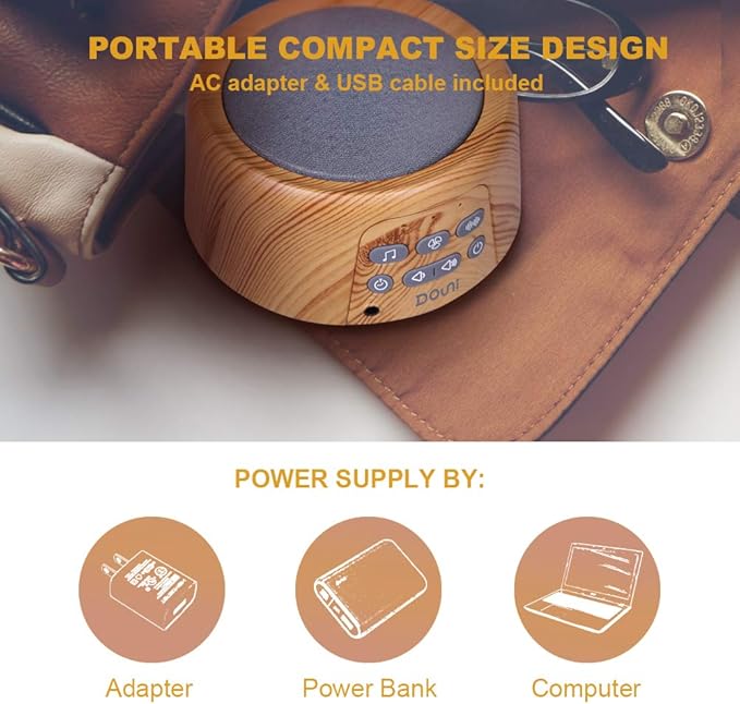 Douni Sleep Sound Machine - White Noise Machine with 24 Non-Looping Soothing Sounds for Sleeping & Relaxation, Timer Settings,Sleep Therapy for Families, Home,Office,Travel.Wood Grain.