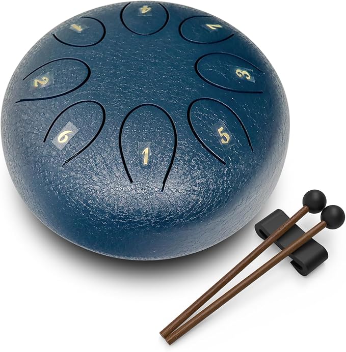 REGIS Steel Tongue Drum 6 inch 8 Notes Musical Percussion Instrument, rain Drum for Outside - Musician Gift for Family and Friends(Navy)