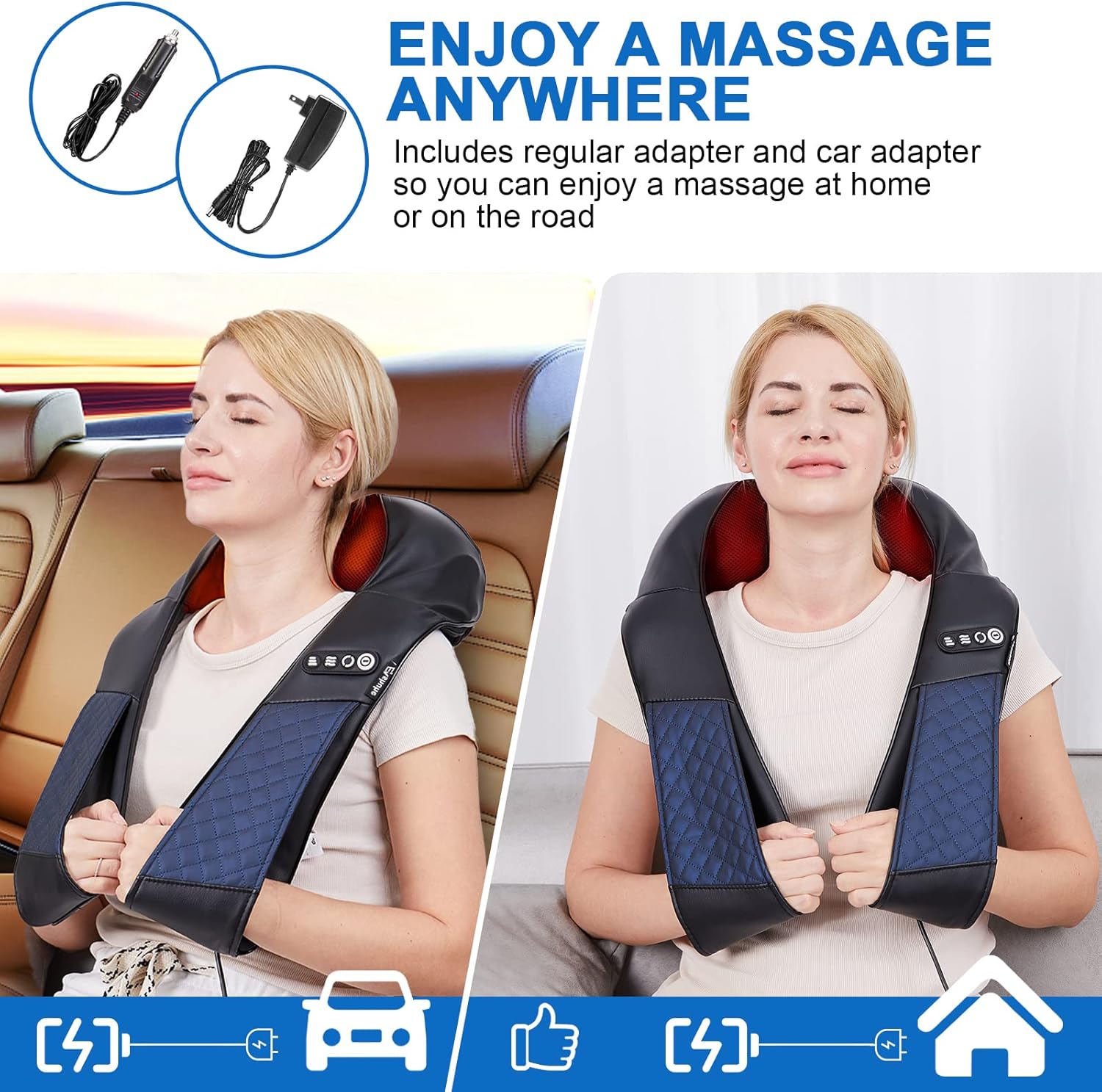 - ENJOY MASSAGE ANYWHERE - Our shiatsu neck and back massager is very portable. Easy to carry and easy to operate. You can use it anytime, anywhere. The neck massager comes with an AC power adapter and car adapter, just enjoy a pleasant massage at home, in office, even on the driving trip. This neck massager for pain relief deep tissue, and allows you or your friends to enjoy a soothing massage.