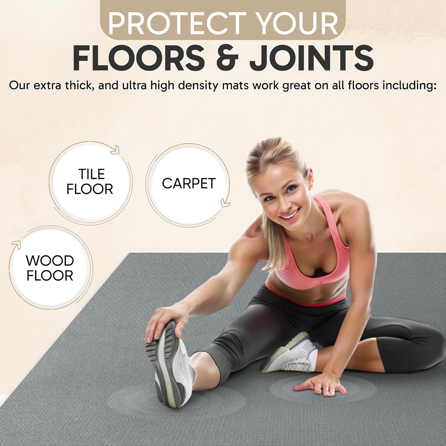 - Protects Floors and Joints – If there’s anything worse than sore joints after an high intensity workout, it’s finding out your carpet or hardwood flooring has been destroyed too. Don’t make plyometrics and burpees any harder than they already are. Works great on all floors including carpet, concrete and tile in your living room, garage, or basement.