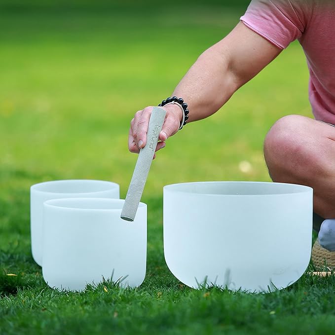 - , Steps to play: Use the singing bowl in a quiet calm space. For a large singing bowl, place the O-ring on a flat surface and set your bowl on it. For smaller bowls, it may be preferable to place them in hand to hear them better. Gently tap the outer rim of the bowl and glide the mallet around the outer edge. Gliding with constant, firm pressure to continue the ringing sound. Practice a few times to achieve perfect sound. Always use light pressure while taping the quartz bowl.