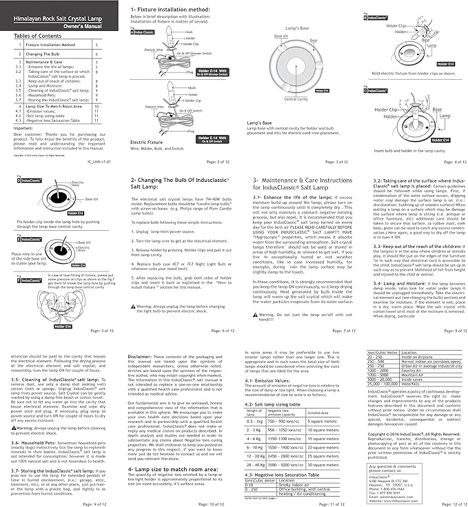 - SALT LAMP - Each Salt Lamp Comes With 3 Bulbs15-Watt And 6-feet UL Listed Electric. Salt Lamp Estimated Ions effectivete area 45 - 49 Square Feet.