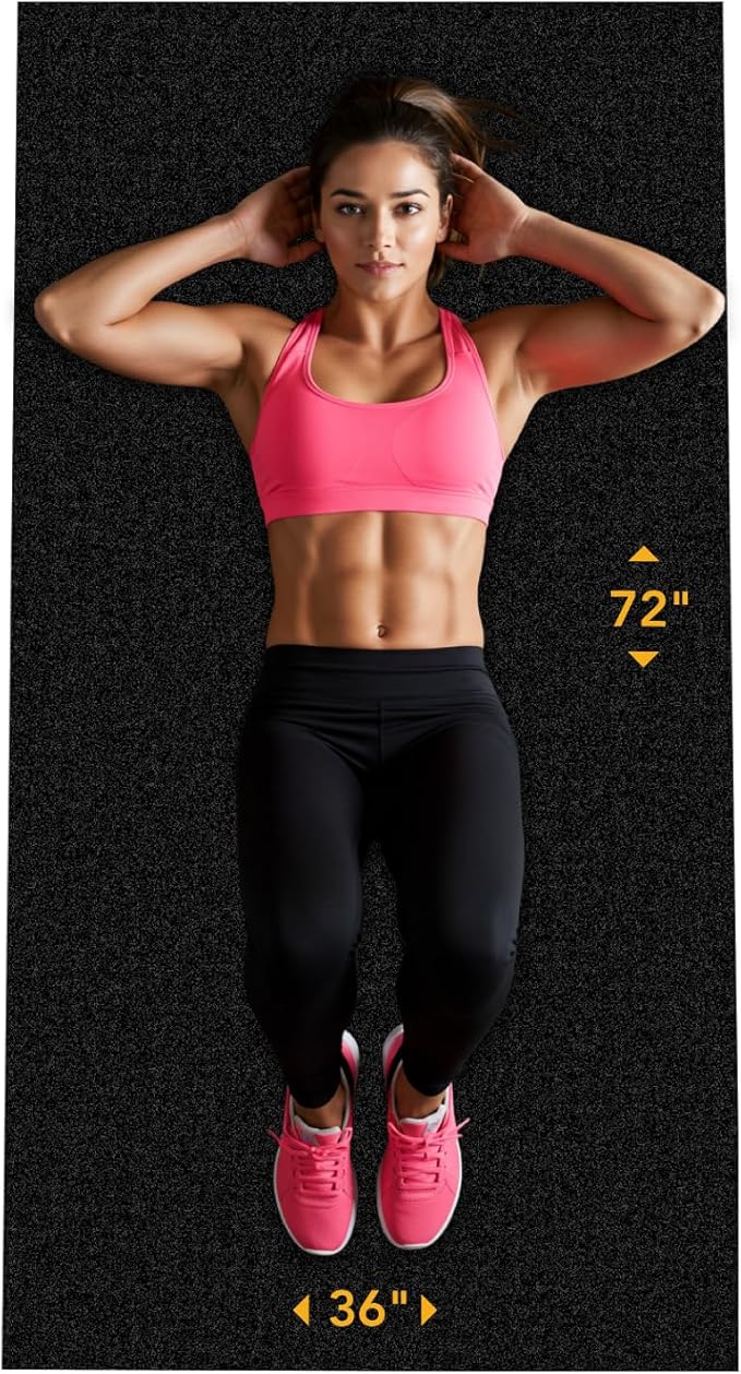 - ADAPTABLE FOR DIVERSE EXERCISES: Approved for a variety of hard surface exercise applications, our mat is perfect for home gym flooring, stretching, free weights, powerlifting, yoga, CrossFit, kettlebells, jump rope, and placement under cardio equipment like treadmills, spin bikes, rowing machines, and ellipticals. Note: Not recommended for installation over carpet.
