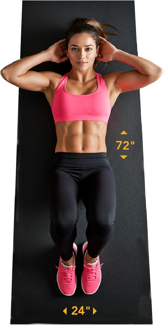 - ADAPTABLE FOR DIVERSE EXERCISES: Approved for a variety of hard surface exercise applications, our mat is perfect for home gym flooring, stretching, free weights, powerlifting, yoga, CrossFit, kettlebells, jump rope, and placement under cardio equipment like treadmills, spin bikes, rowing machines, and ellipticals. Note: Not recommended for installation over carpet.