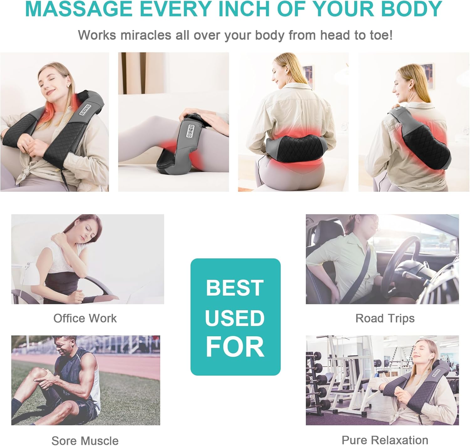 - ADVANCED SOOTHING HEAT FUNCTION: Heated neck and shoulder massager will help soothe fatigued muscles and reduce stress. The breathable mesh fabric promotes heat penetration and allows flexible mobility of the massage nodes. This massager is built with overheat protection and a 15-minute auto-shutdown feature to ensure safety while using. You can turn on or off the heat to achieve the coziest massage depending on your needs. (Switch on the heating function 5–10 minutes before use for optimum heating. After preheating, restart the device to use.)