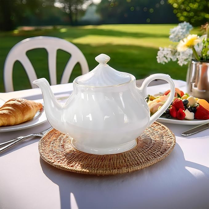 Lynns Porcelain Vintage Teapot with Embossed Swirls 37oz Tea Pot Classic White Tea Set for Parties & Celebrations Ideal Teapot for Tea Cups & Saucers Perfect for Tea Parties - Imperial Gold