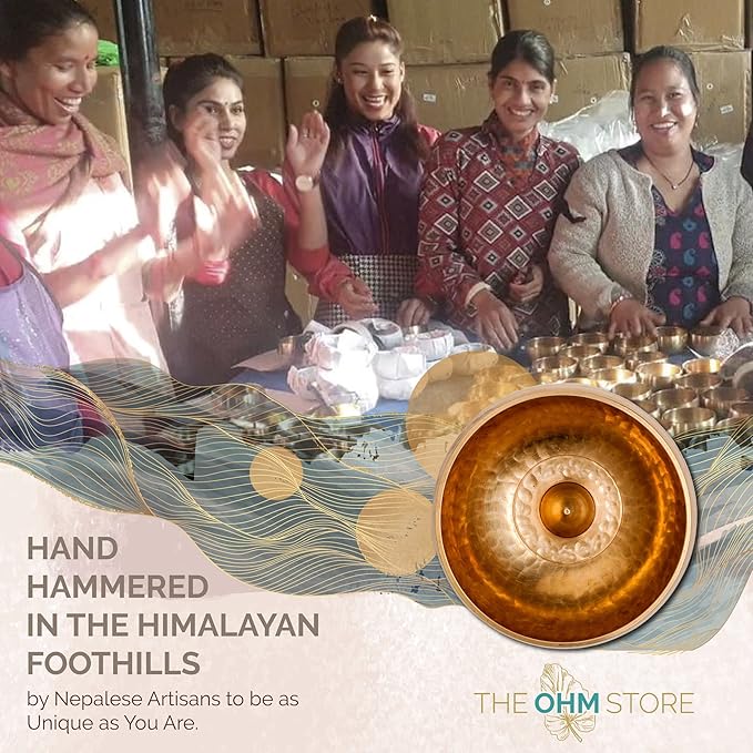 Tibetan Singing Bowl Set by Ohm Store — Hand Hammered Lingam Meditation Sound Bowl — Yoga, Chakra Balancing, Mindfulness, Stress and Anxiety Relief