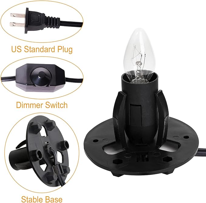 - 【2-Pack Salt Lamp Cord Replacement】 5-foot-long Original Cord comes with a handy dimmer switch, which can help you adjust the brightness of the lamp. Specifically designed for salt lamps to hold any 15~25 Watt E12 light bulbs.