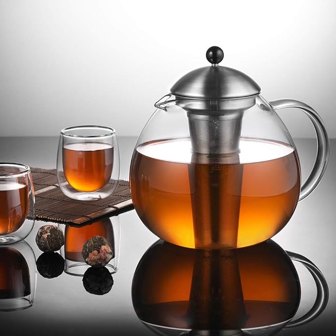 glastal 67oz XL Large Glass Teapot with Infuser Stovetop Safe, Tea Pots for Loose Tea Glass, Glass Tea Kettle for Stove Top, Clear Teapot with Strainer for Loose Tea (2000 ml)