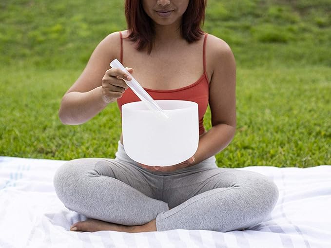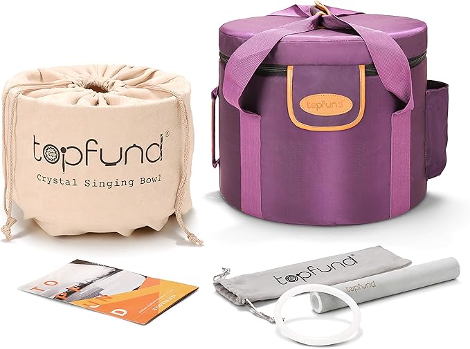 TOPFUND F Note Heart Chakra Crystal Singing Bowl 10 Inch with Heavy Duty Carrying Case and Suede Mallet