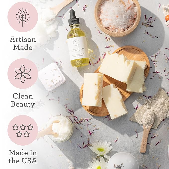 - INCLUDES: All-natural bath set includes: β Lavender natural soap bar β Body Scrub β Shea Butter Cream β Bath Salts β Bath Bomb β Eye Mask β Shower Mist β Body Oil β Candle β Clay facial mask β Natural lip balm β Face Towel β Cosmetic Bag β Soap saver β Gorgeous box