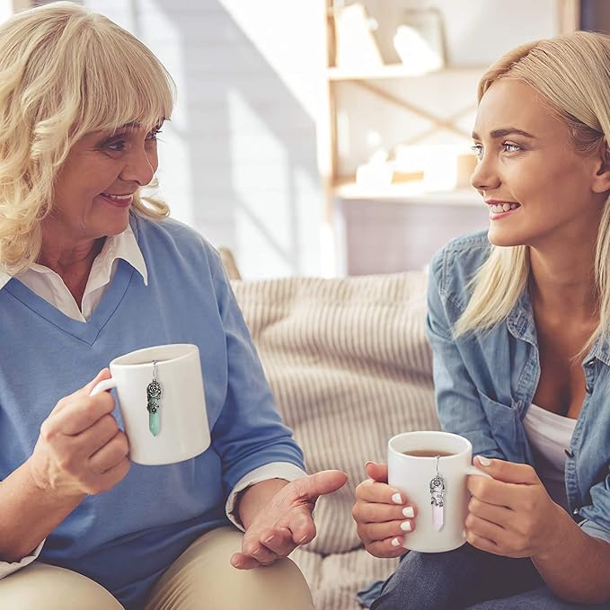2 Pack Healing Crystal Pendant Loose Tea Steeper Tea Infusers Tea Strainers for Couple Gift,Antique Silver Flower Wrapped Natural Gemstone Hexagonal 18/8 Stainless Steel Fine Mesh Tea Ball