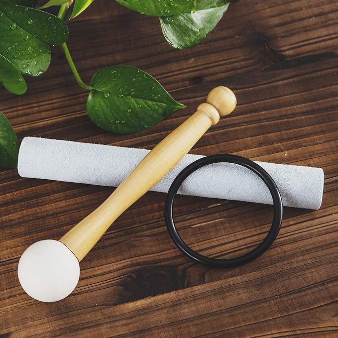 - Package includes: 1 * 8 inch wide 7 inch high white high quality crystal singing bowl, 1 * thick cowhide suede striker, 1 * rubber mallet, 1 * one O-ring, 1 * Carrying Case