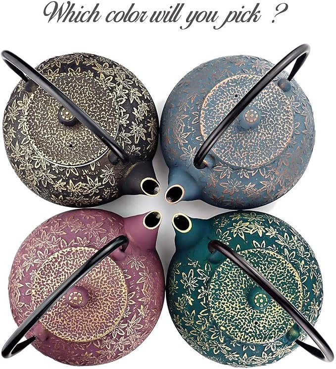 - Crafted by Hand from Start to Finish: Our purple tea pot is more than just a kettle; it's a handcrafted piece of art; Each purple tea kettle is molded from heavy-duty iron, carefully hand-painted, and beautifully engraved with multiple leaves, symbolizing health and happy relationships
