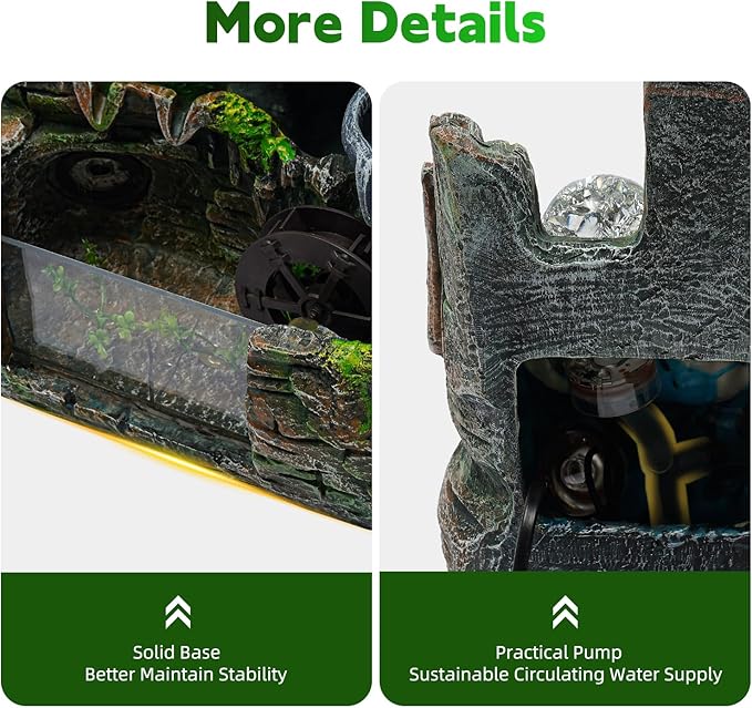 - Build to Last: The high-quality resin with a painting process makes this tabletop water fountain solid and resistant to fading, so it can withstand the test of time.
