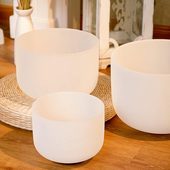 - 【Package include】Crystal Singing Bowls Set x 3 (12C 10F 8B),Suede Striker x 1,Rubber Mallet x 1,O-ring x 3,Crystal Singing Bowl Carrying Case x 1.
