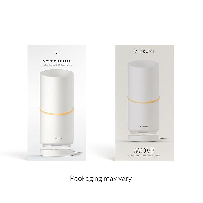 Vitruvi Move Cordless Ultrasonic Essential Oil Diffuser | Wireless Diffuser for Home Aromatherapy | 4 & 8-Hour Run Times - White