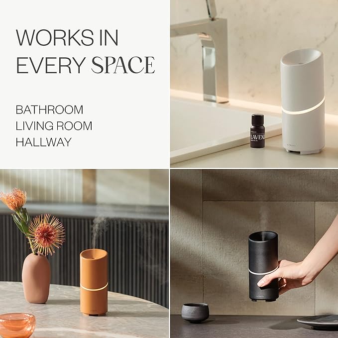 - AWARD-WINNING DESIGN - Enhance your home decor with this sleek, contemporary cordless oil diffuser that doubles as a piece of art. Its modern silhouette blends seamlessly with any interior, and you can even activate the optional LED light for a soft glow, creating a delightful ambience. Activate night mode to turn off all lights for a peaceful atmosphere.