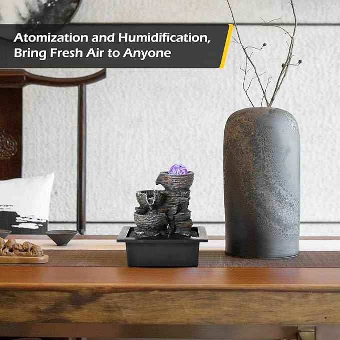 - [Easy To Use]-The portable indoor water tabletop fountain is easy to use, just add water to the indoor waterfall fountain and plug in a standard power outlet. Then you can enjoy the soothing effect of this indoor fountain, which is very suitable for decoration in any room.